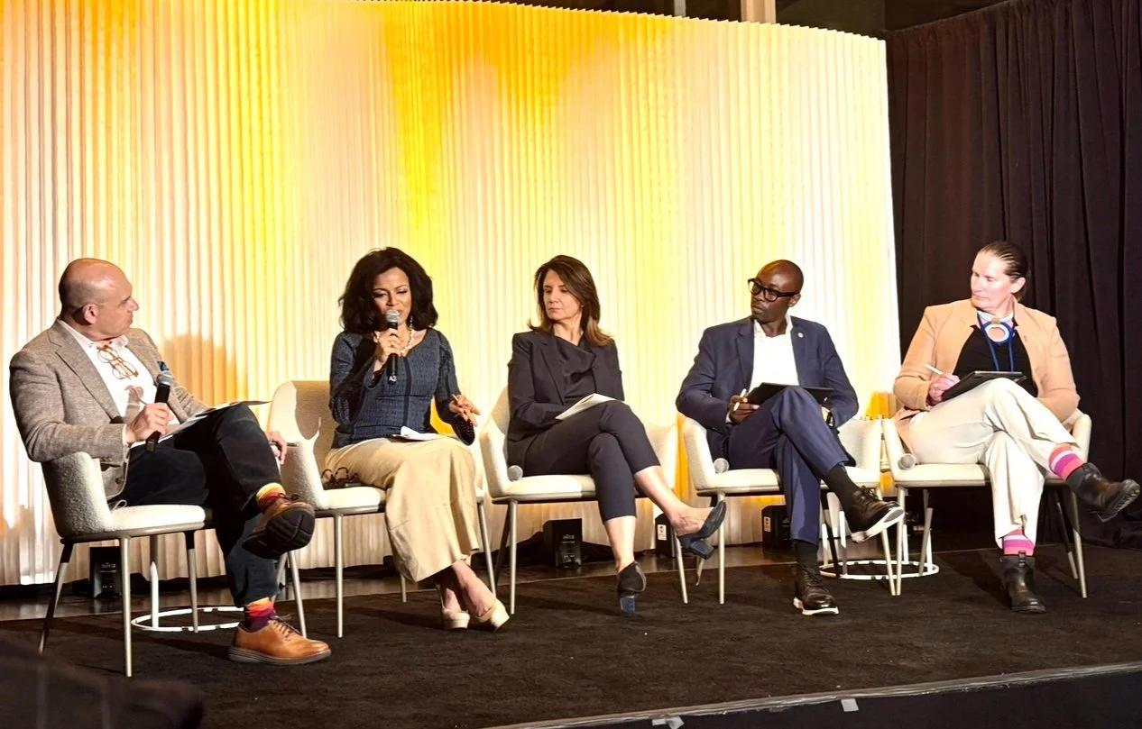 The Climate Week panel hosted by Devex CEO Raj Kumar. With Valerie Hickey of World Bank, James Muraguri of Institute of Public Finance, Tariye Gbadegesin of Climate Investment Funds and Cop30 CEO Ana Toni.